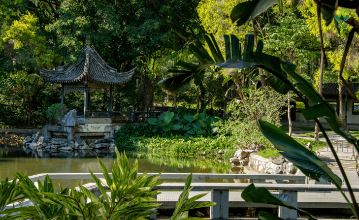 এটি বিশ্বব্যাপী প্রায় শতাধিক উদ্যান শিল্পকলার একত্রিত করে, প্রতিটি মোড়ে একটি সুন্দর দৃশ্য সহ, একটি বাগান যাদুঘরের মতো, মানুষের তৈরি স্থাপত্যের সাথে প্রাকৃতিক ল্যান্ডস্কেপিংকে দক্ষতার সাথে মিশ্রিত করে, পূর্ব উদ্যানের গভীরতা এবং বিভিন্ন দেশের শৈলী প্রদর্শন করে।